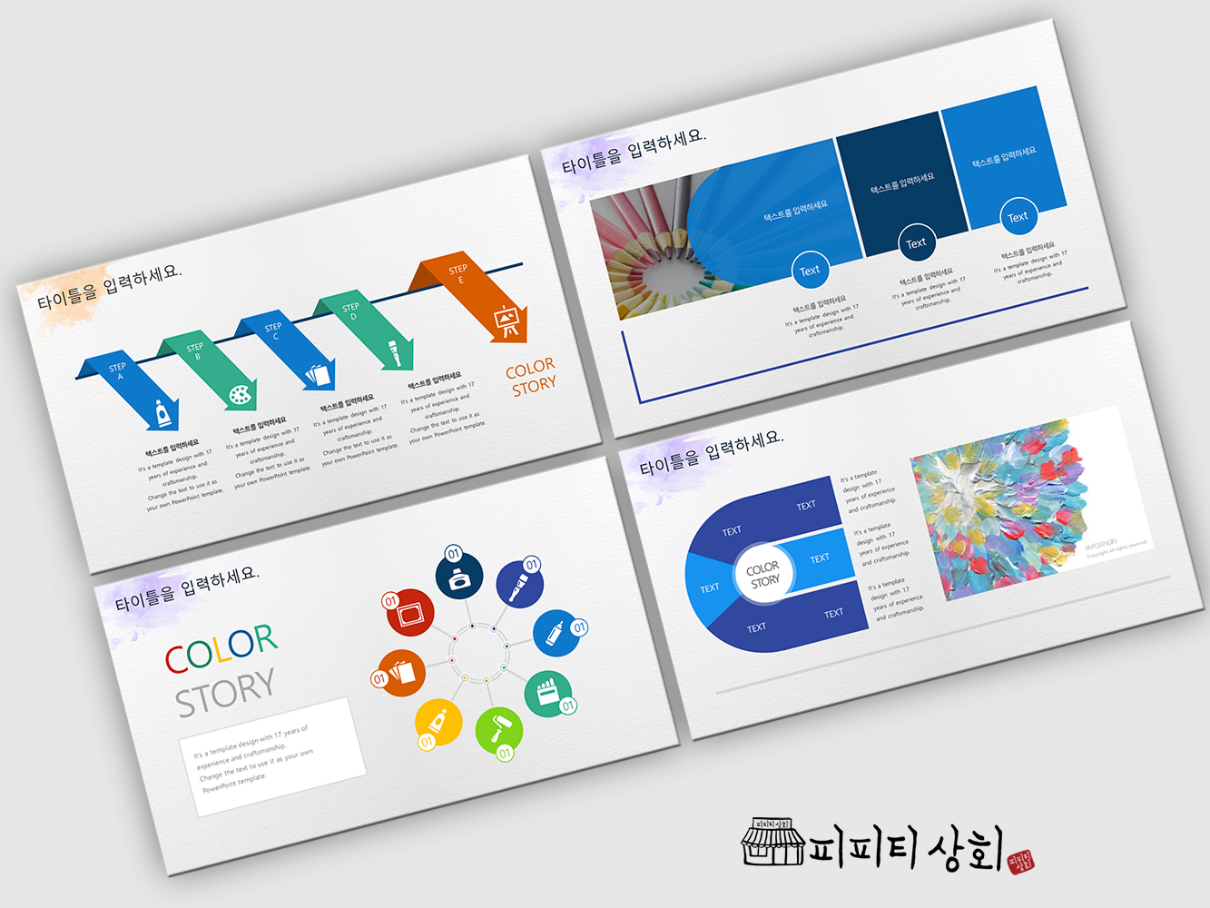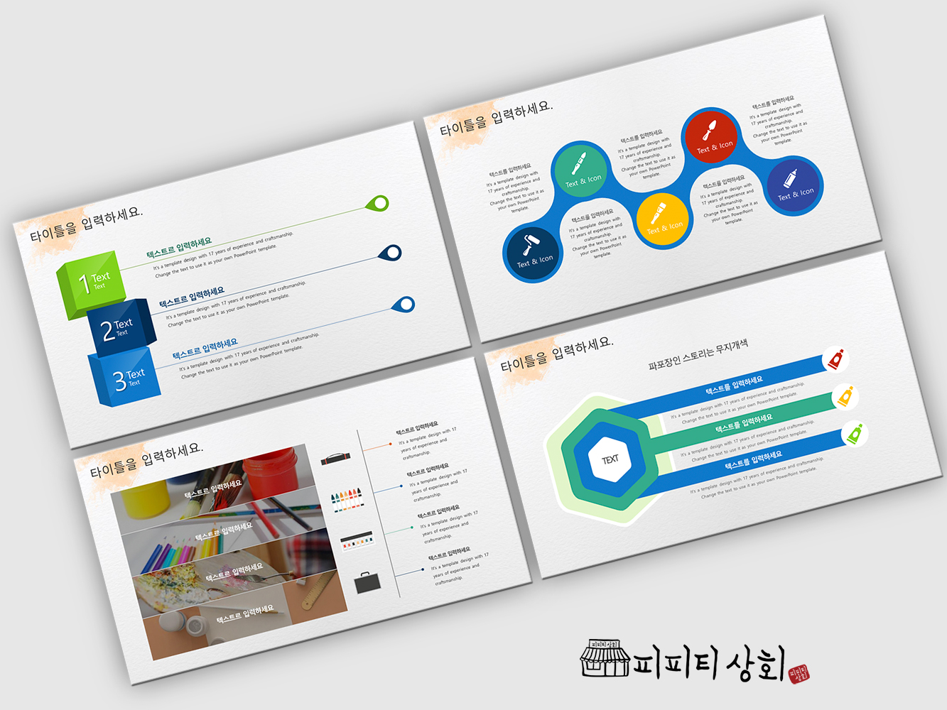 | 구성 | 표지2장, 고급 이미지컷 3장, 목차, 간지, 내지, 색상변경이 자유로운 아이콘 560개 제공 |