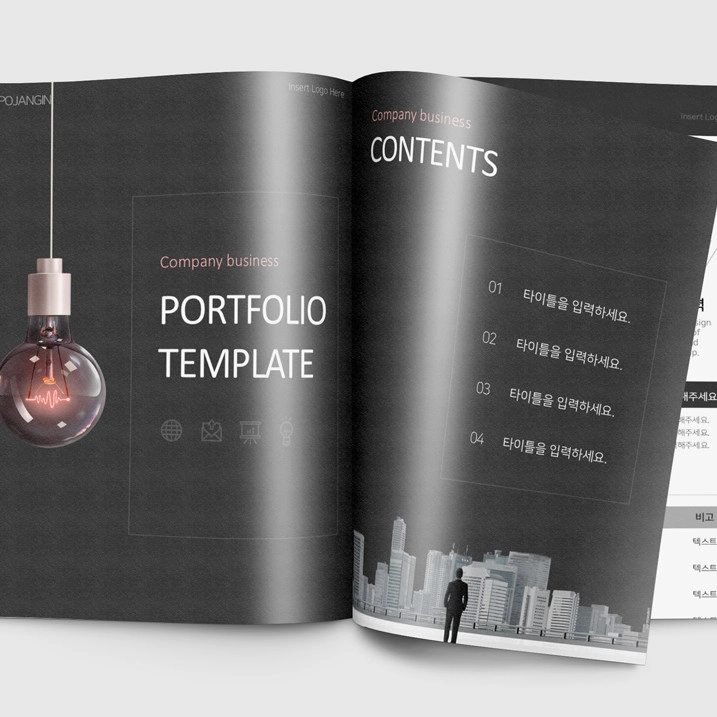 | 구성 | 표지2장, 고급 이미지컷 3장, 목차, 간지, 내지, 색상변경이 자유로운 아이콘 560개 제공 |