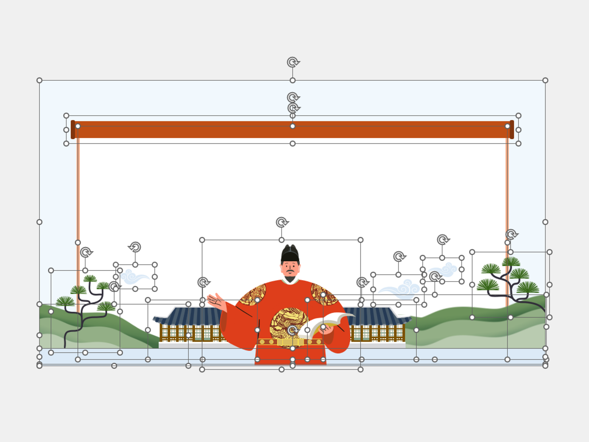 전통적인 일러스트와 깔끔한 레이아웃을 활용해